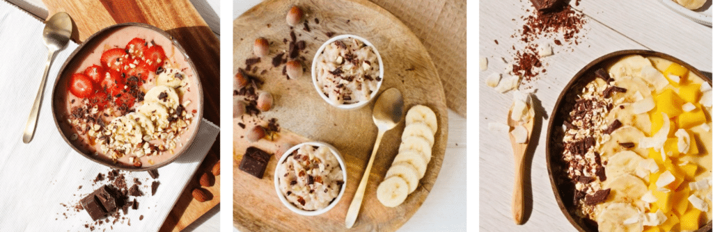 - Psst : Pour une version petit déjeuner, verser la préparation dans un bol et y ajouter du muesli ou granola avec les toppings de son choix (chocolat, noix de coco, fruits frais…)