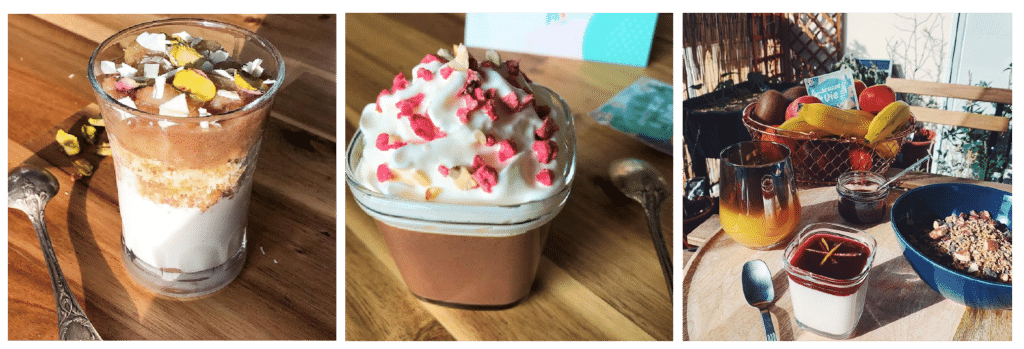 Sur nos comptes Instagram et Facebook, on vous partage différentes recettes propres à nos 3 premières préparations de ferments végétaux : Embrasse la vie, Du bonheur à boire et Ferme les yeux et déguste. Des recettes simples, gourmandes et surtout originales ! Des références aux multiples textures, toujours vegan, sans lactose, bio et faites maison !