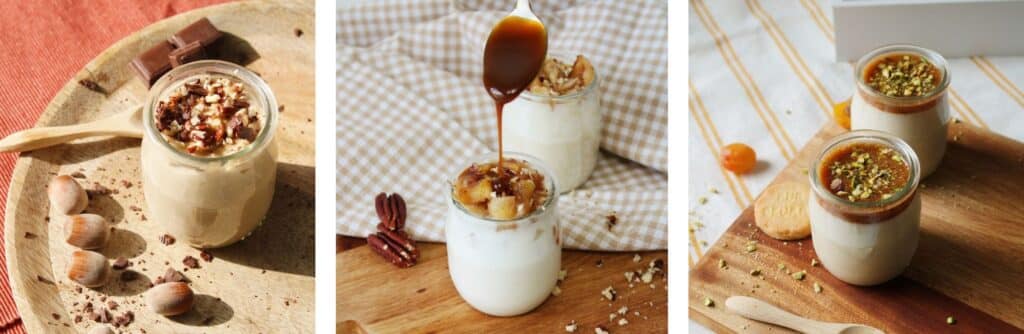Les fêtes arrivent à grands pas et le mois de novembre a été l’occasion de vous livrer des recettes insolites que vous pourrez tester avant Noël. De quoi avoir le temps de peaufiner leurs réalisations pour éblouir vos convives avec des desserts traditionnels revisités en version végétale ! Et pour cela, rien de mieux que d’utiliser nos lait végétaux d’Amande élégante et de Noisette irrésistible et à nos yaourts au lait de vache aux ferments actifs pour bénéficier en plus de bienfaits nutritionnels. Découvrez sans plus attendre les 3 recettes les plus appréciées par notre communauté postées sur Instagram et Facebook.