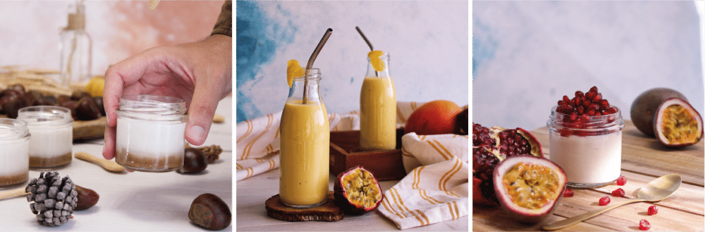 Un délicieux smoothie aux saveurs exotiques à partager tout au long de l’automne avec notre kit pour yaourt végétal à boire Le nomade amande